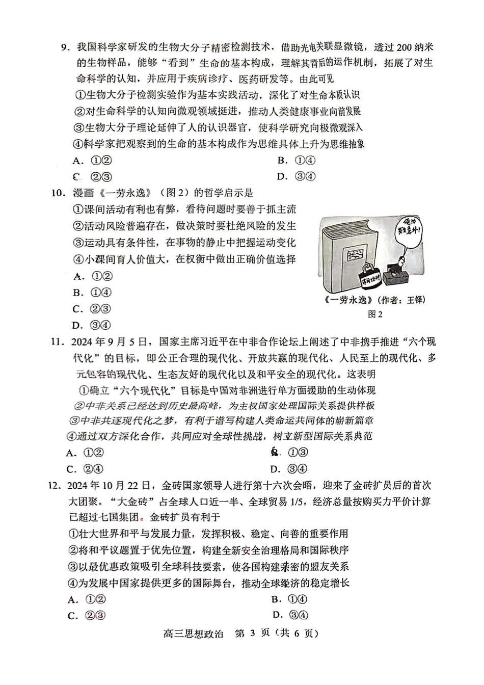 辽宁省沈阳市2025届高三上学期教学质量监测(一)政治试卷.pdf_第3页