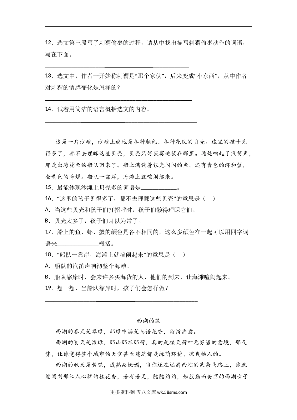 三年级上册语文试题-《阅读理解》专项练习题 部编版(含答案)(8).doc_第3页