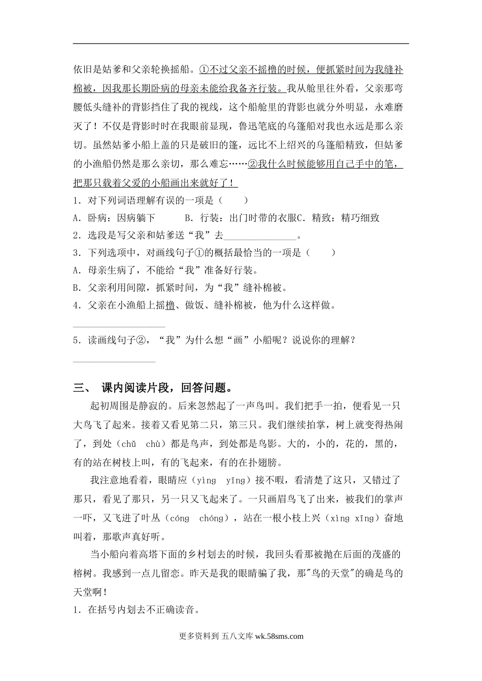 小学语文五上阅读题及答案(10篇) (3).doc_第3页