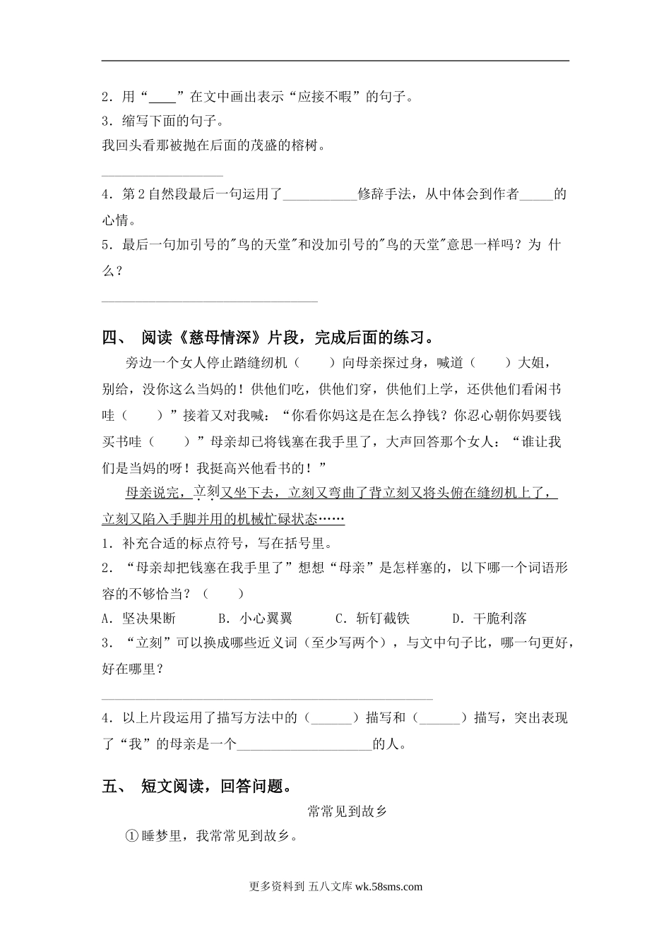 小学语文五上阅读题及答案(10篇) (3).doc_第2页
