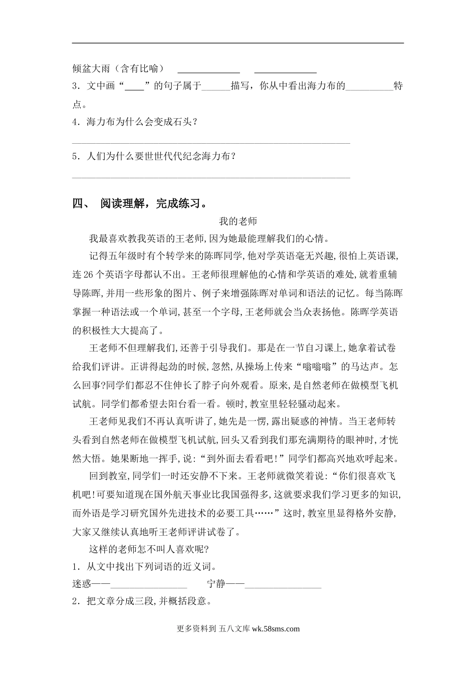 小学语文五上阅读题及答案(10篇) (4).doc_第2页