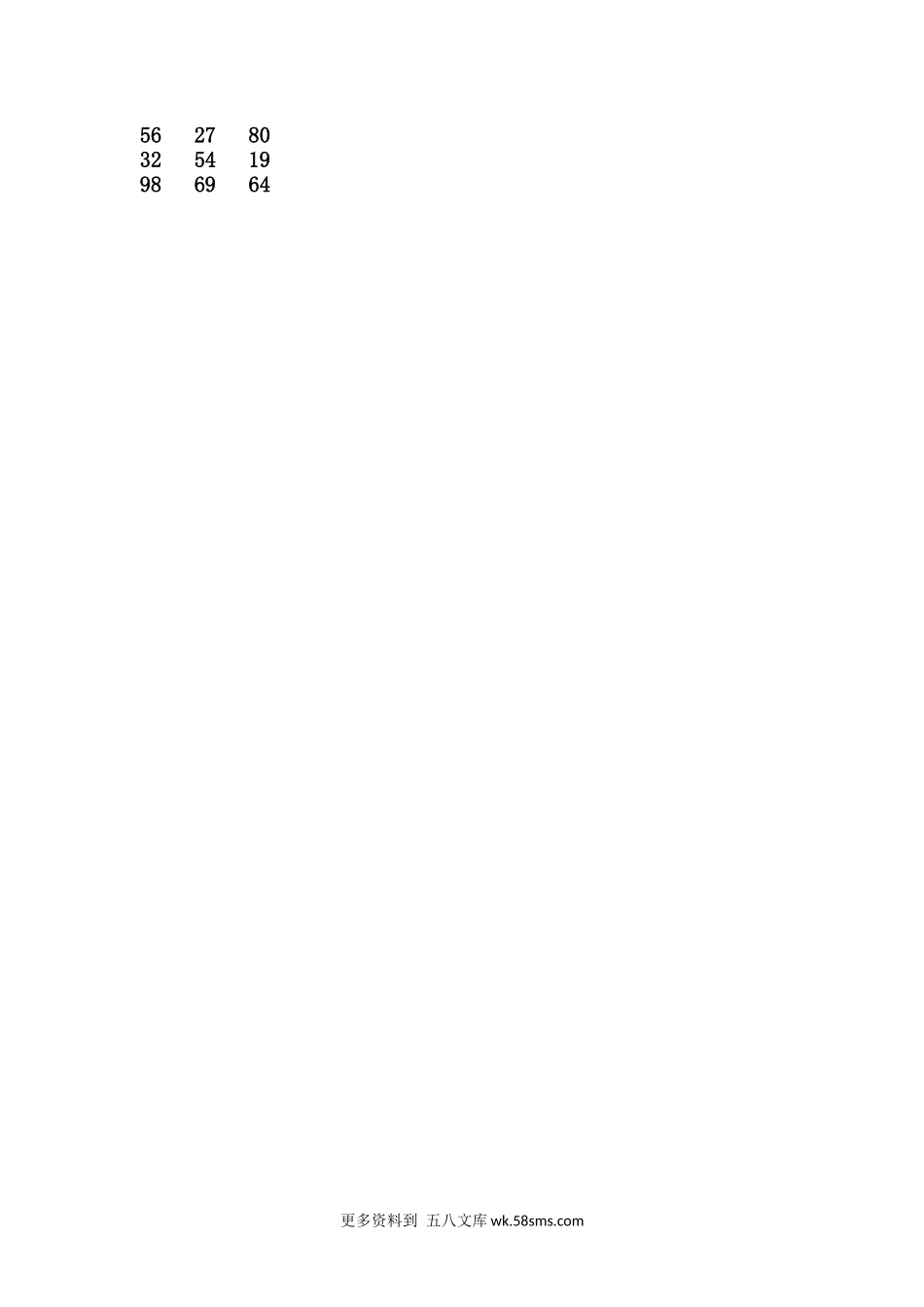 二年级加减法427+9=80–35=33–18=73+20=26+7=80–34=31–18=19+24=45+8=60–4=47–20=28+52=24+8=90–36=38–19=58+40=62+7=80–16=参考答案364515933346134353更多资料到五八文库wk.58sms.com562780325419986964更多资料到五八文库wk.58sms.com