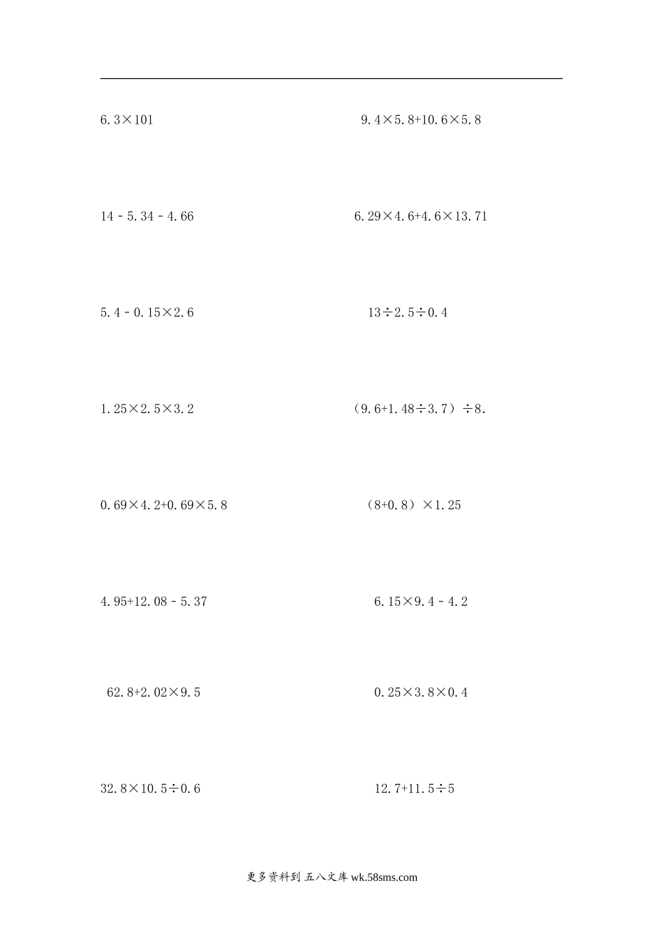 五年级计算题05【精】小数混合运算15页.doc_第1页