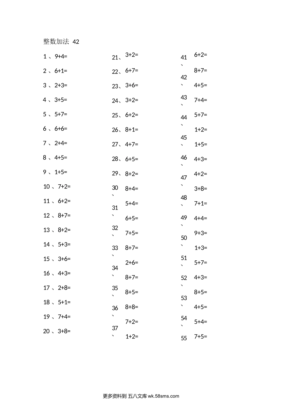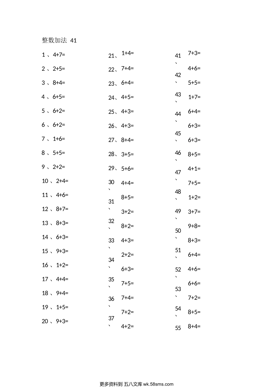 整数加法411、4+7=2、2+5=3、8+4=4、6+5=5、6+2=6、6+2=7、1+6=8、5+5=9、2+2=10、2+4=11、4+6=12、8+7=13、8+3=14、6+3=15、9+3=16、1+2=17、4+4=18、9+4=19、1+5=20、9+3=1+4=7+4=6+4=4+5=4+3=4+3=8+4=3+5=5+6=...