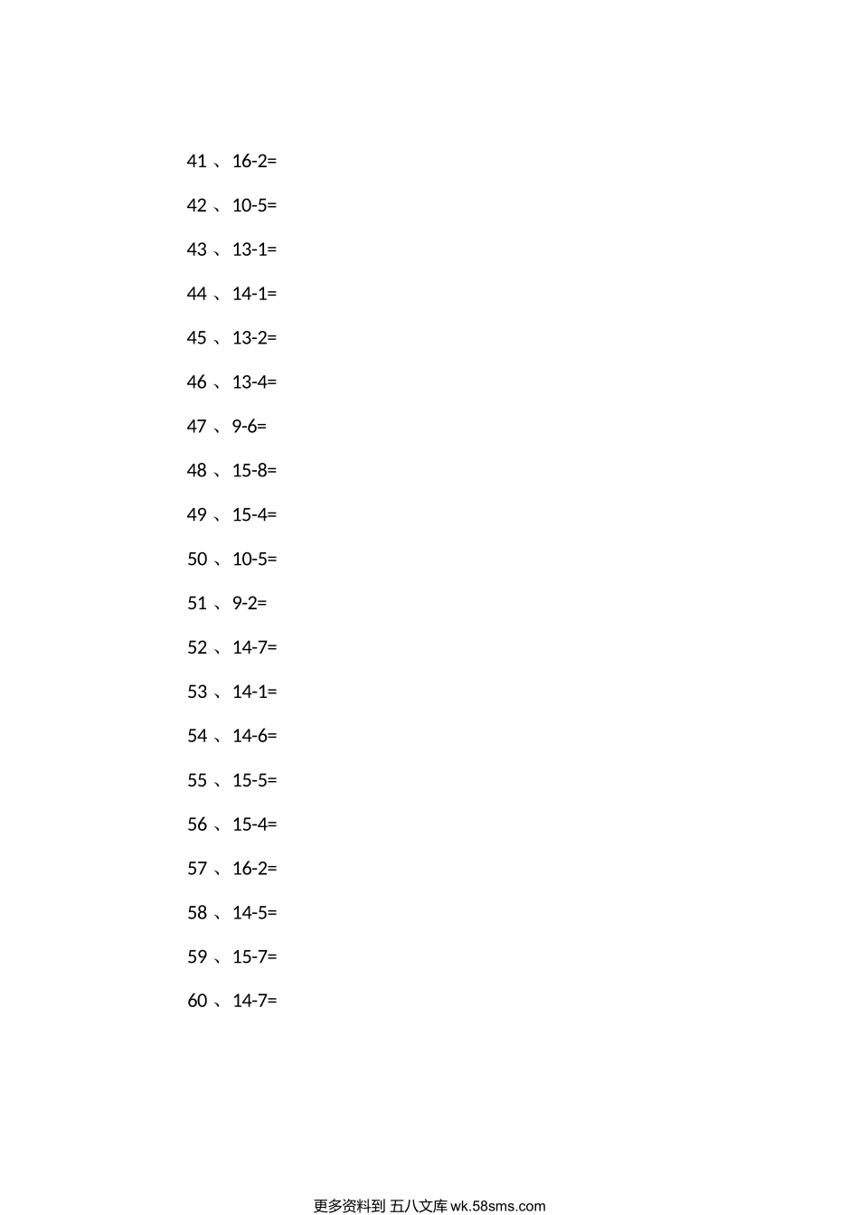 整数减法211、11-4=21、2、12-2=22、3、11-7=23、4、10-1=24、5、14-7=25、6、15-7=26、7、15-7=27、8、11-3=28、9、15-5=29、10、9-7=30、11、15-4=31、12、14-2=32、13、9-6=33、14、14-6=34、15、15-2=35、16...