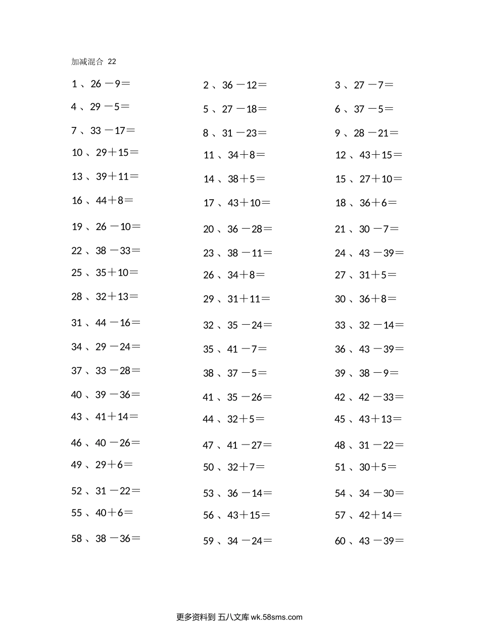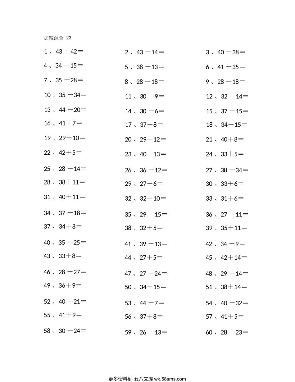 加减混合211、37-20=4、26-11=7、32+9=10、29+13=13、34+12=16、37+5=19、42-14=22、43-34=25、33+15=28、29+10=31、43-9=34、29+5=37、30+11=40、41-40=43、43-25=46、43-19=49...