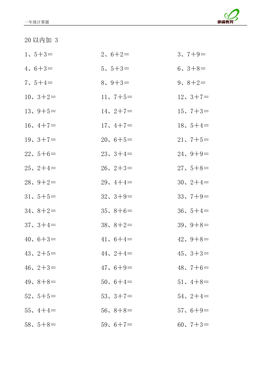小学数学口算一年级20以内第1-30篇.pdf_第3页