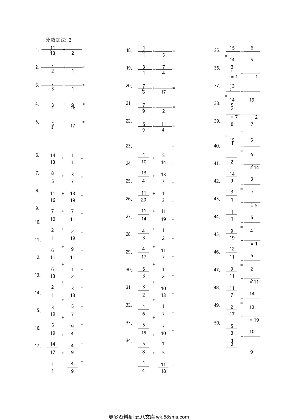 分数加法11、+=7152、+=2193、+=1134、+=1815、+=411+=187+=716+=142+=1513+=616+=811+=135+=21+=76+=6116、7、8、9、8373187181114131517718135143718143++++++++++++3711183131271219791419719109107111415====...
