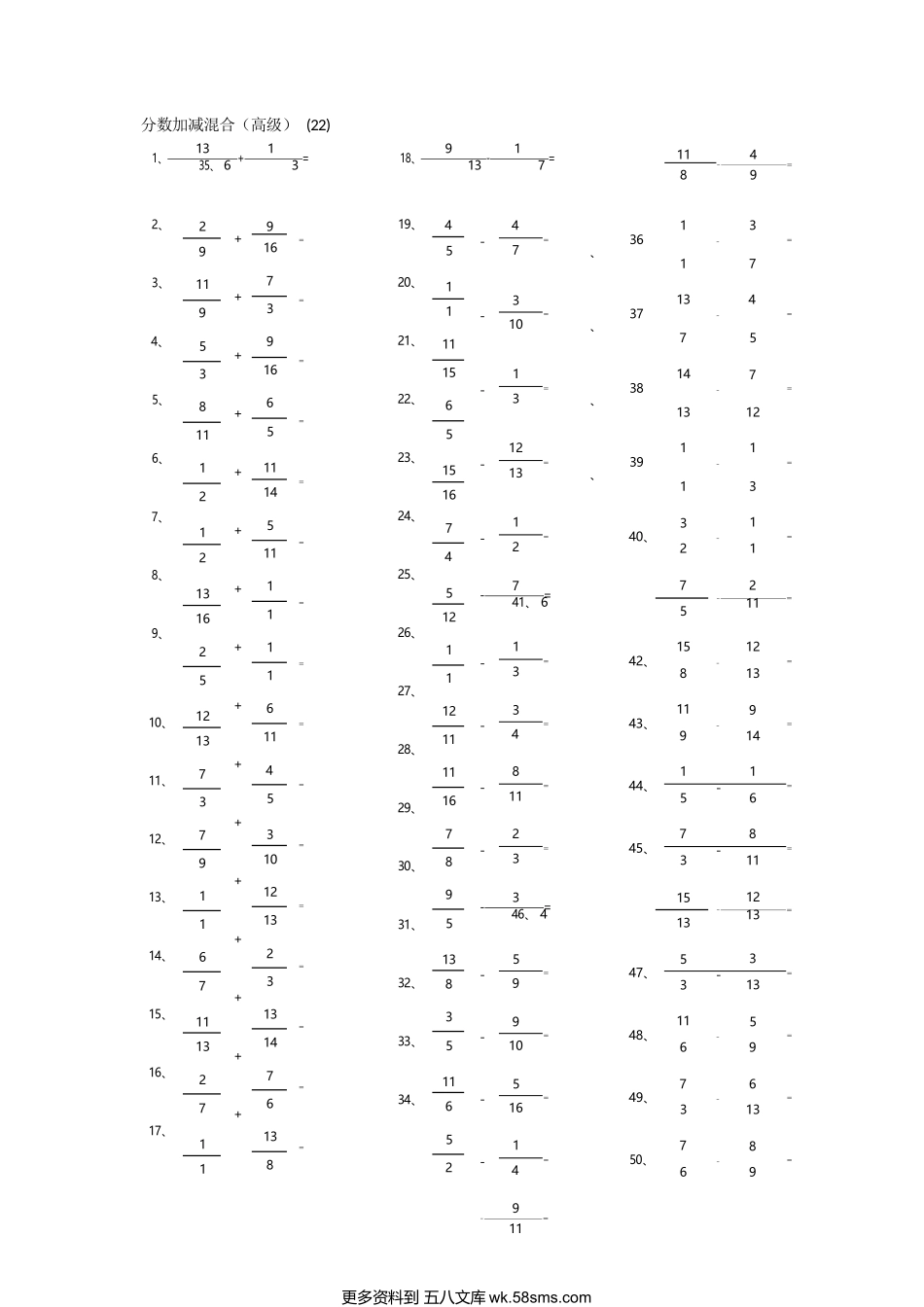 分数加减混合(高级)(21)251、+=18、134113-1614=35、114-=15152、3、4、5、6、7、8、9、15163723791111913548134935911121316101135++++++++++++++++11512119113512767512713981381514136355365===============...