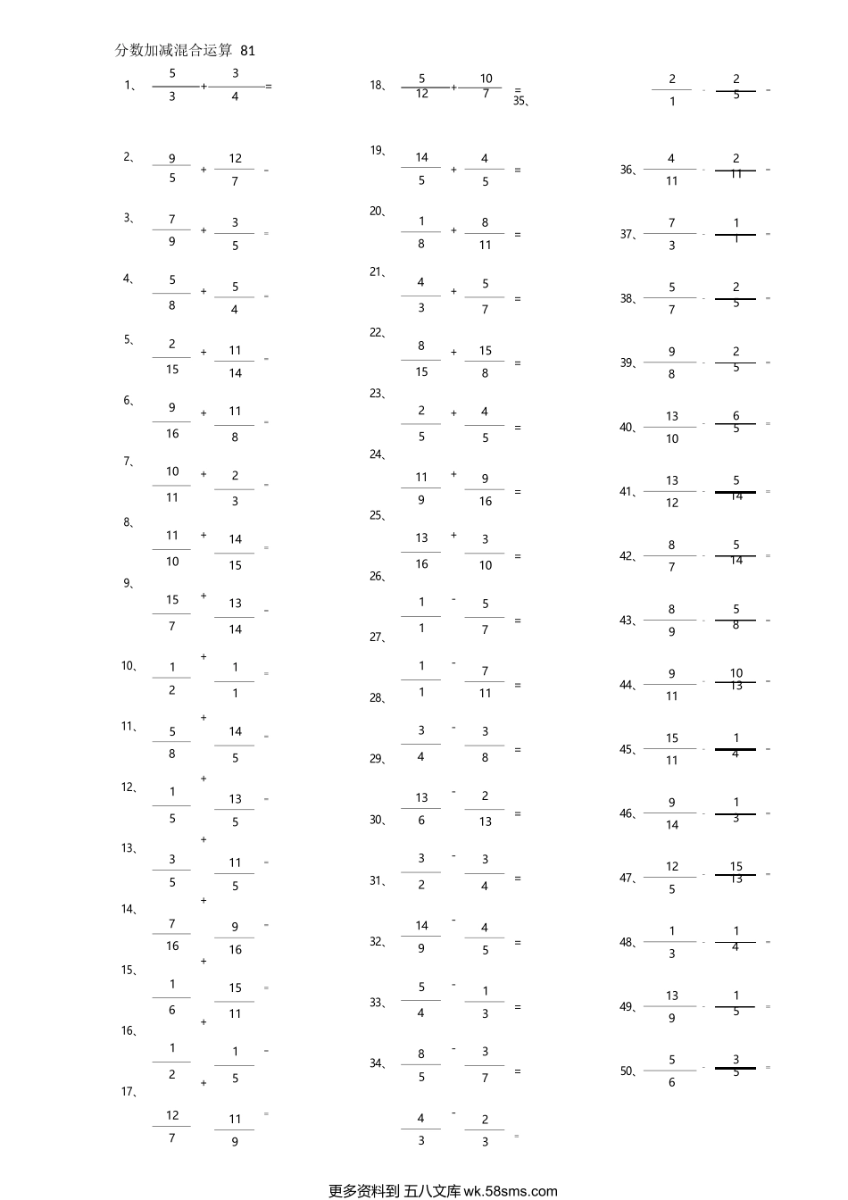 分数加减混合运算81531、+=34510+127=35、212-=52、3、4、5、6、7、8、9、95795821591610111110157125815357161612127++++++++++++++++12735541114118231415131411145135115916151115119================14518438...
