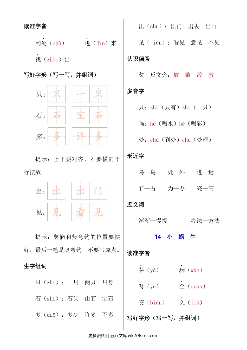 一上语文第八单元核心考点清单小学语文一年级上册知识点清单(人教部编版).docx_第2页