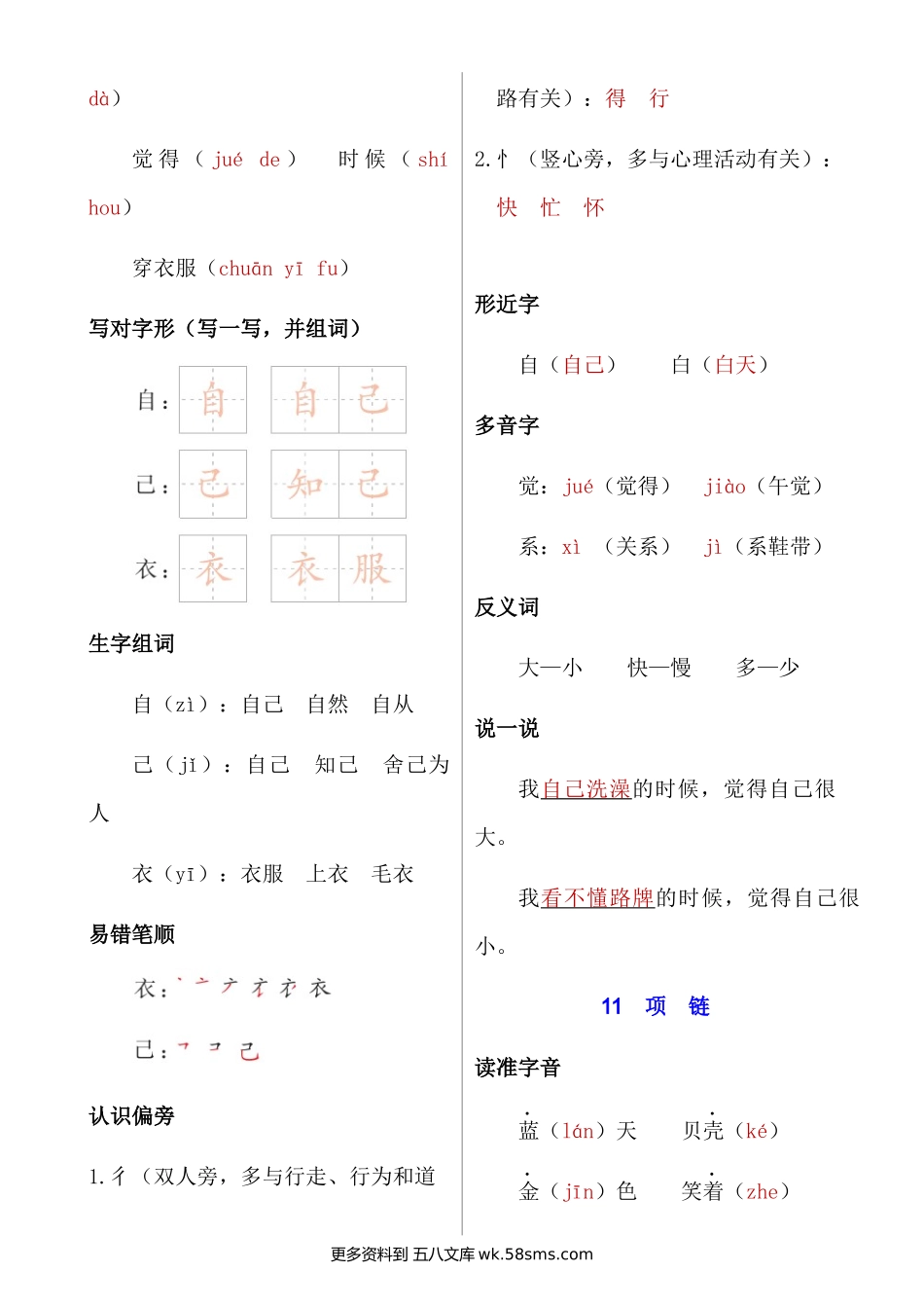 一上语文第七单元核心考点清单小学语文一年级上册知识点清单(人教部编版).docx_第2页