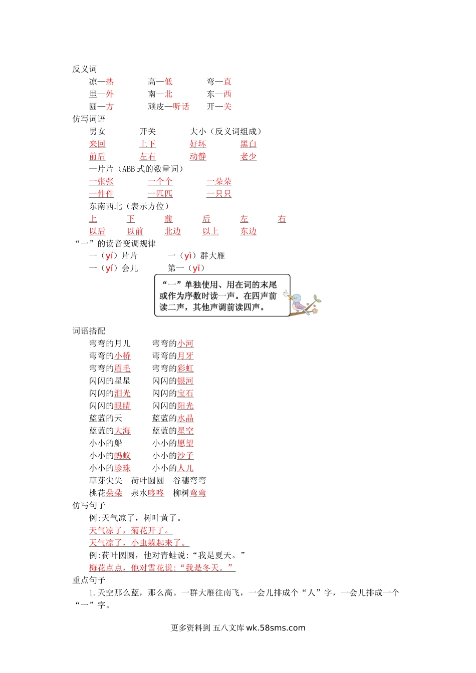 一上语文第四单元知识小结小学语文一年级上册知识点清单(人教部编版).docx_第2页