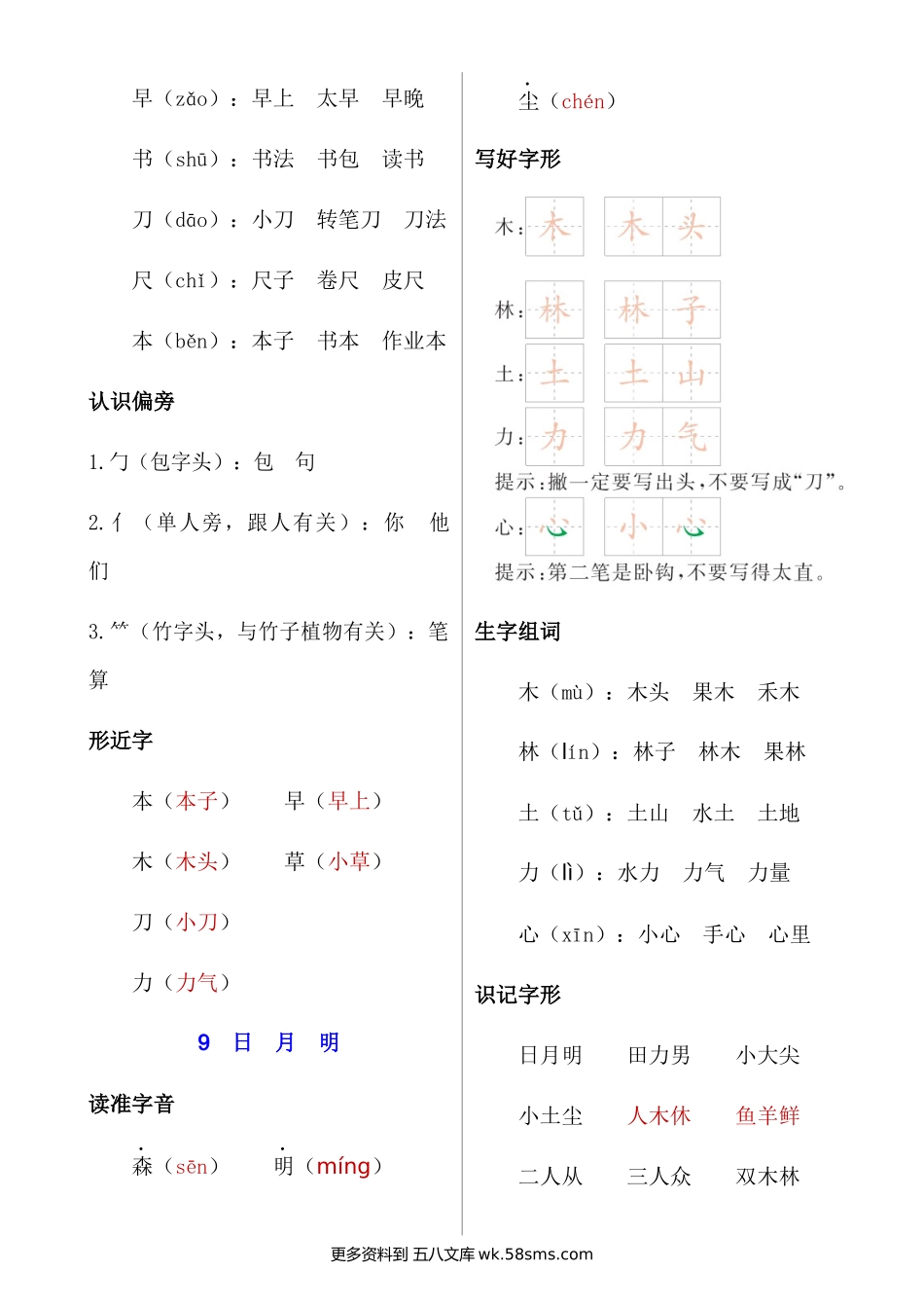一上语文第五单元核心考点清单小学语文一年级上册知识点清单(人教部编版).docx_第2页