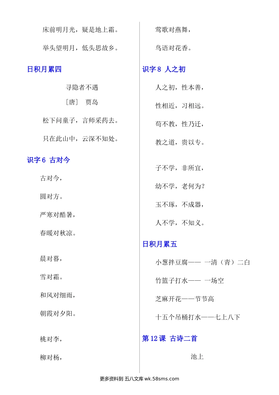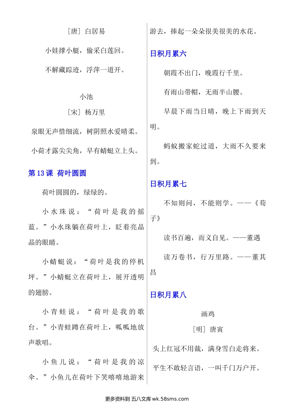 一下语文必背内容(古诗、课文、日积月累)小学语文一年级上册知识点清单(人教部编版).docx_第2页