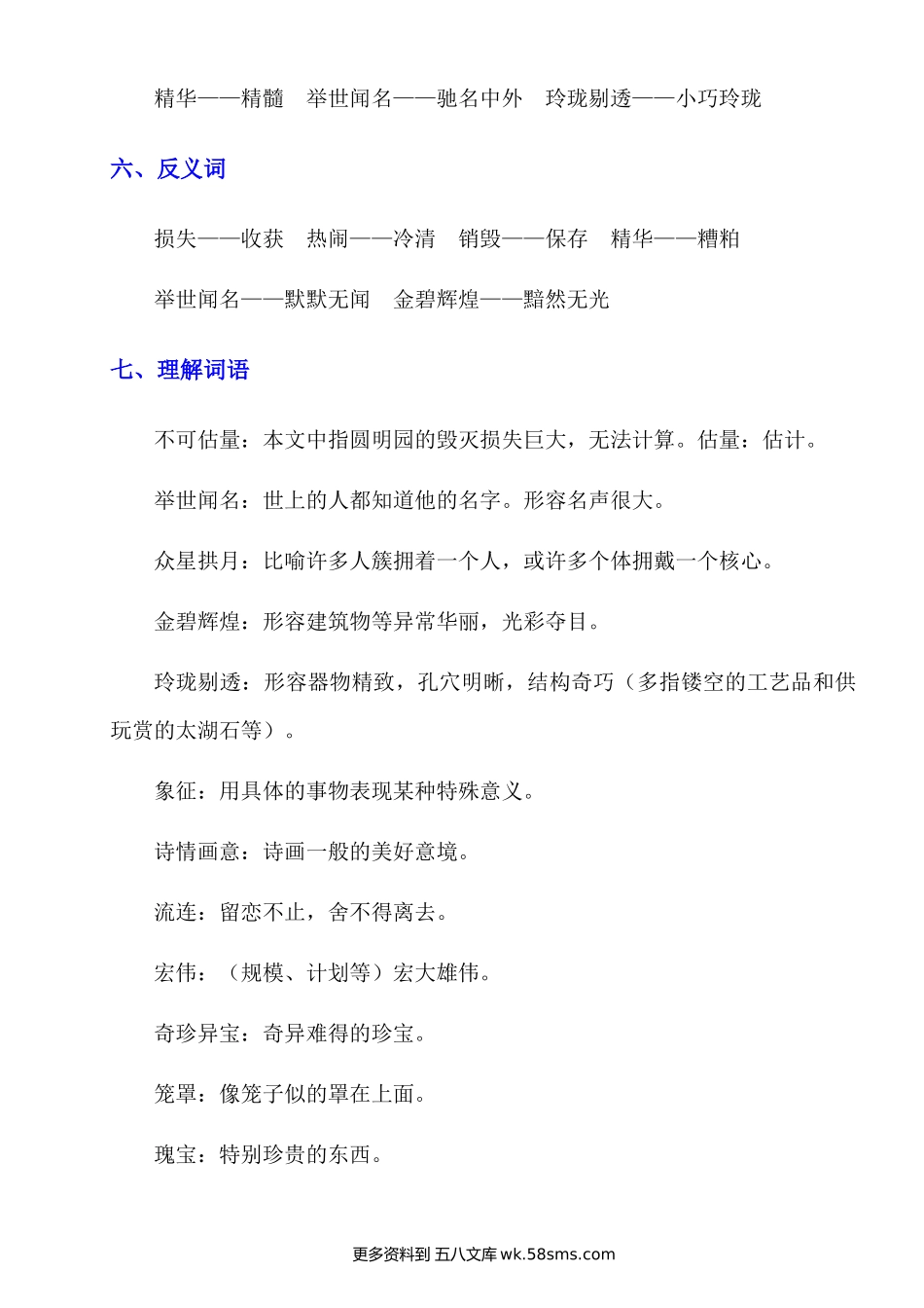 第14课《圆明园的毁灭》知识点及练习题小学语文五年级上册知识点清单(人教部编版).docx_第3页