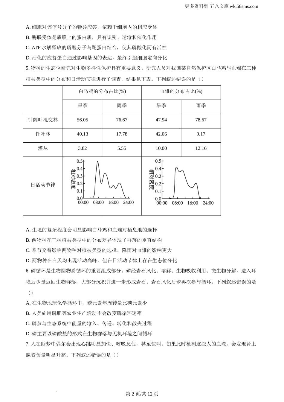 2024年新课标高考真题安徽卷生物试卷及答案解析.doc_第2页