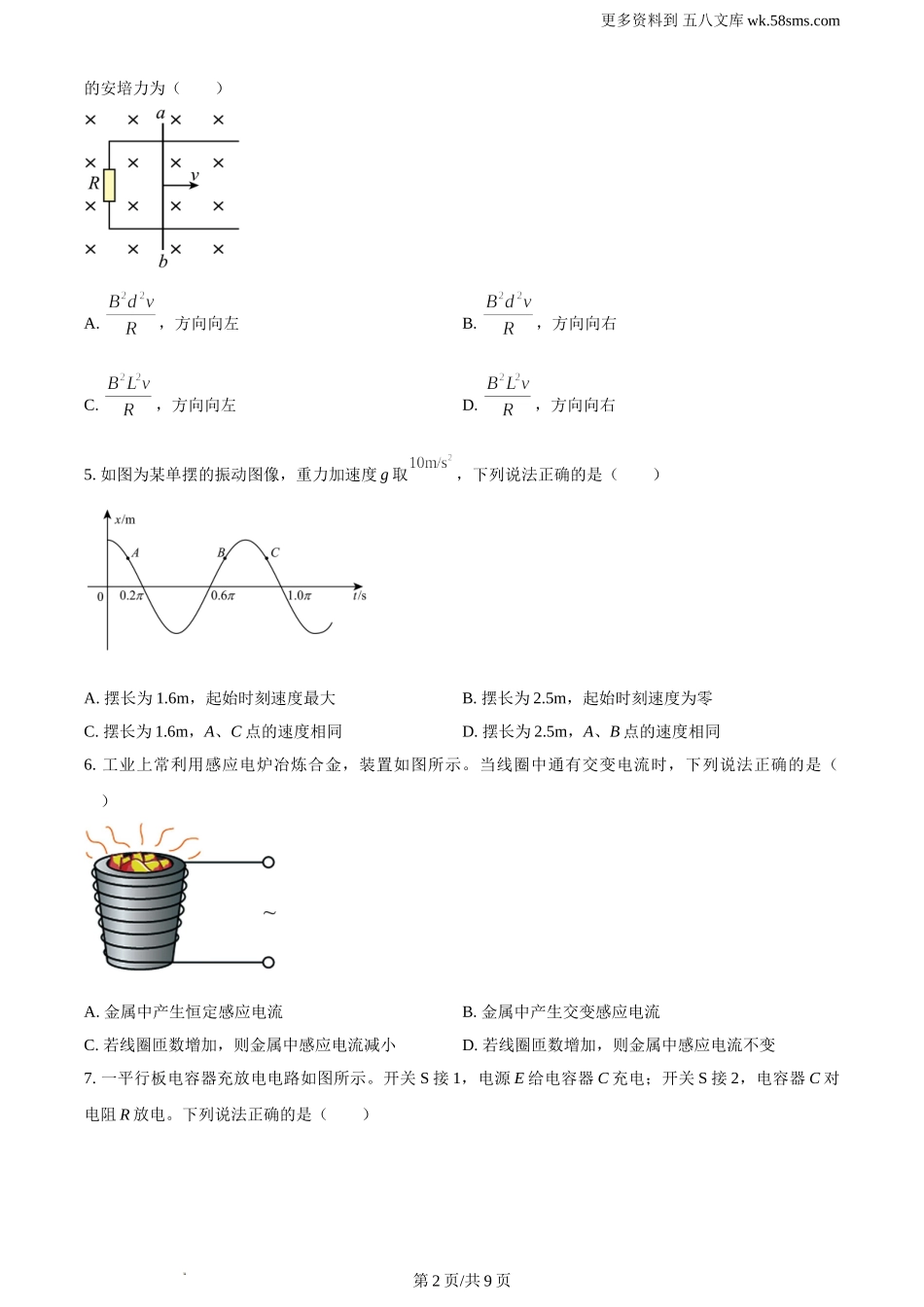 更多资料到五八文库wk.58sms.com机密★启用前2024年甘肃省普通高校招生统一考试物理注意事项:1.答卷前,考生务必将自己的姓名、准考证号填写在答题卡上2.回答选择题时,选出每小题答案后,用2B铅笔把答题卡上对...