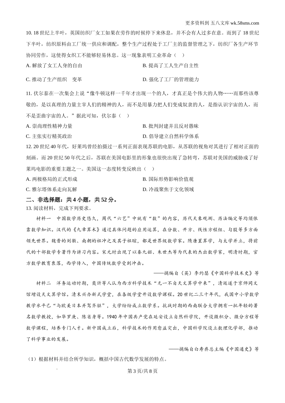 2024年高考全国甲卷文科(历史)真题及答案解析.doc_第3页