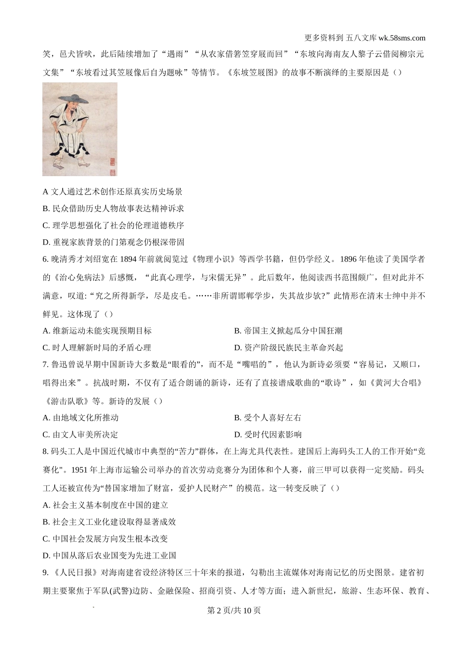2024年海南高考历史真题及答案解析Word电子版下载.doc_第2页