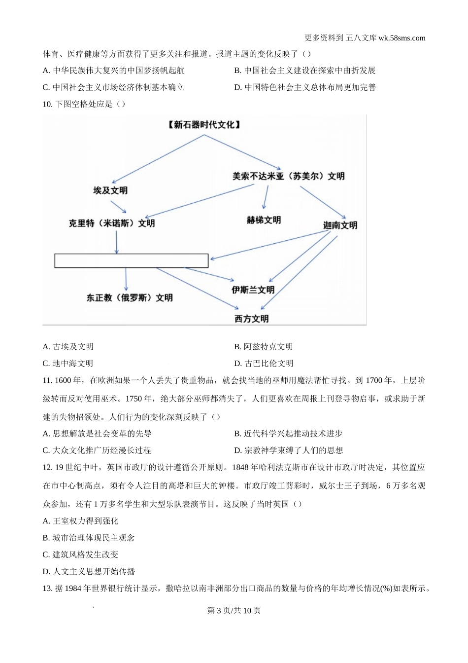 2024年海南高考历史真题及答案解析Word电子版下载.doc_第3页