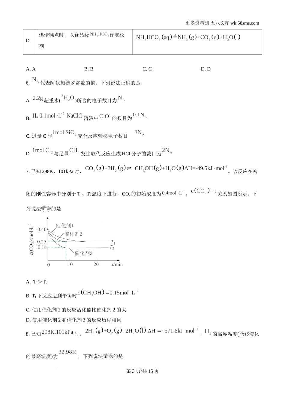 更多资料到五八文库wk.58sms.com机密★启用前2024年海南省普通高中学业水平选择性考试化学注意事项:1.答卷前,考生务必将自己的姓名、准考证号填写在答题卡上。2.回答选择题时,选出每小题答案后,用铅笔把答题...