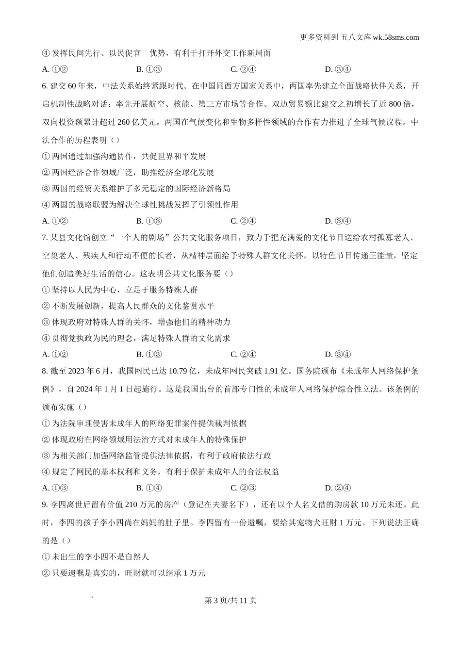 2024年湖北高考政治试卷及答案解析.doc_第3页