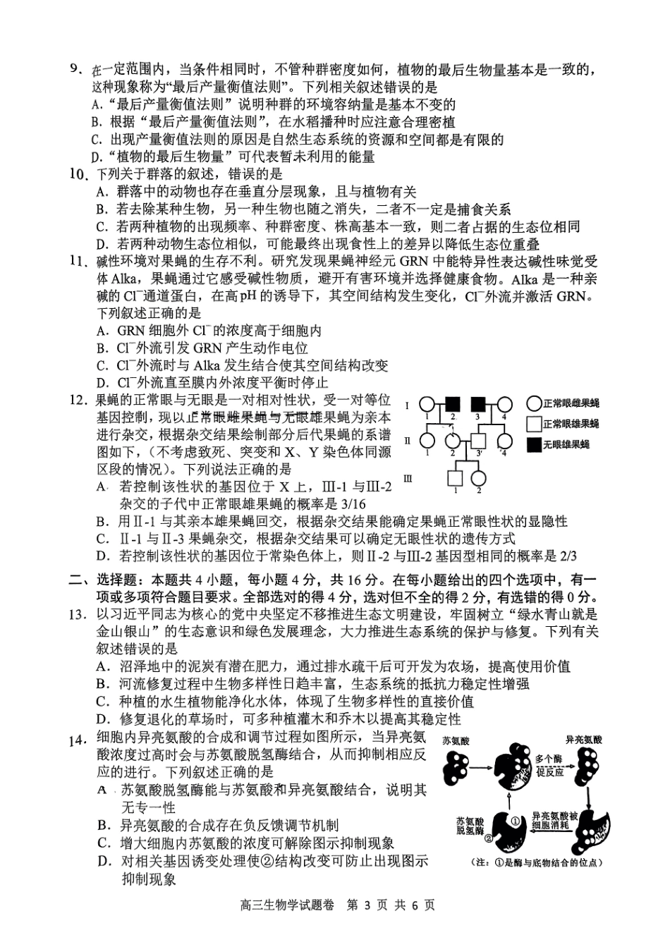 2024-2025学年上学期 湖南省益阳市高三生物期末(试题卷).pdf_第3页