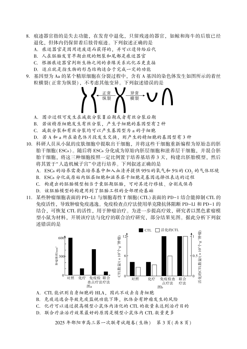 2025年邵阳市高三第一次联考试题卷(生物)第1页(共8页)2025年邵阳市高三第一次联考试题卷生物本试卷共8页,21个小题。满分100分。考试时间75分钟。注意事项:1.答卷前,考生务必将自己的姓名、考生号填写在答题卡上。...