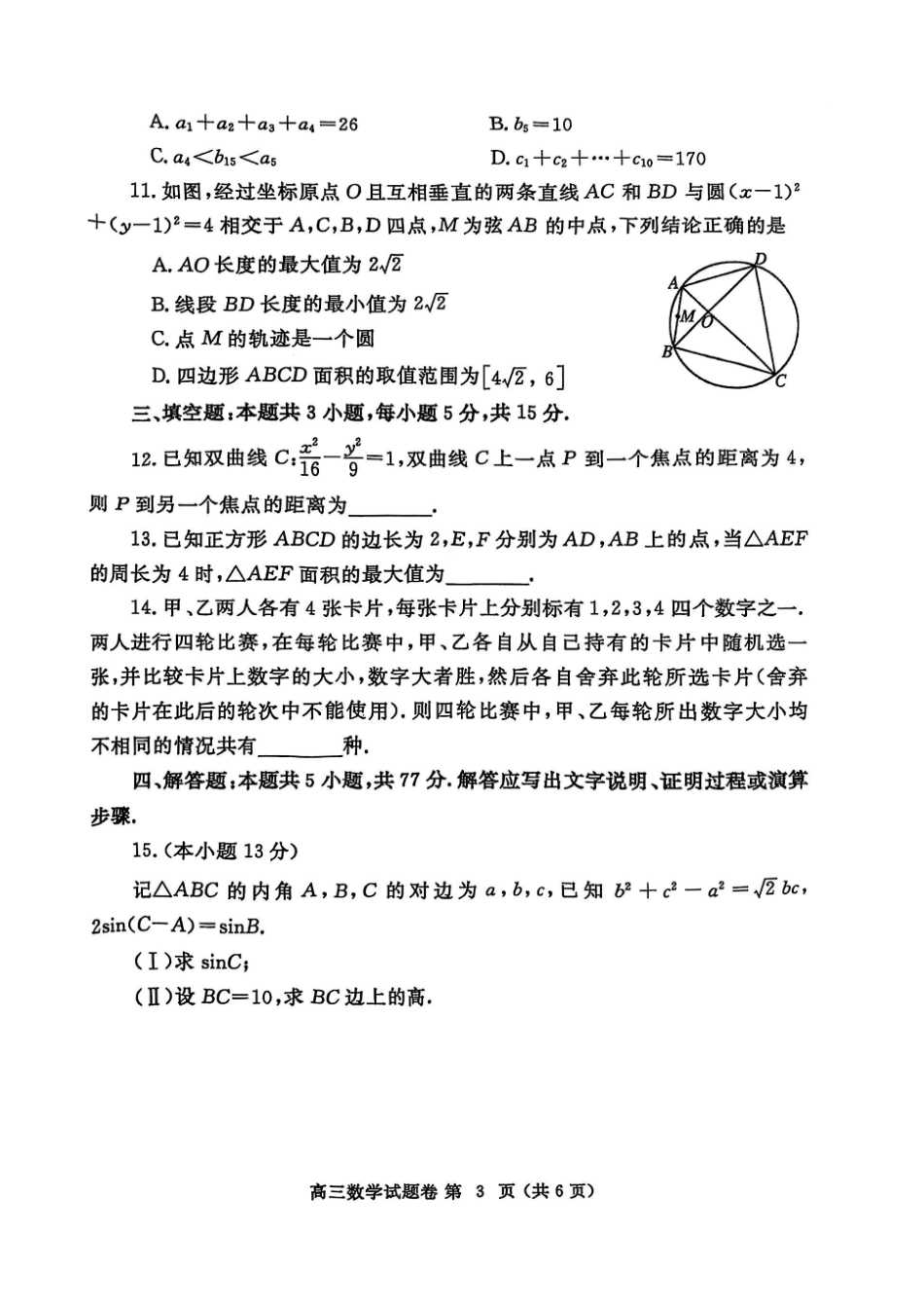 河南省郑州市2025届高三第一次质量预测数学.pdf_第3页