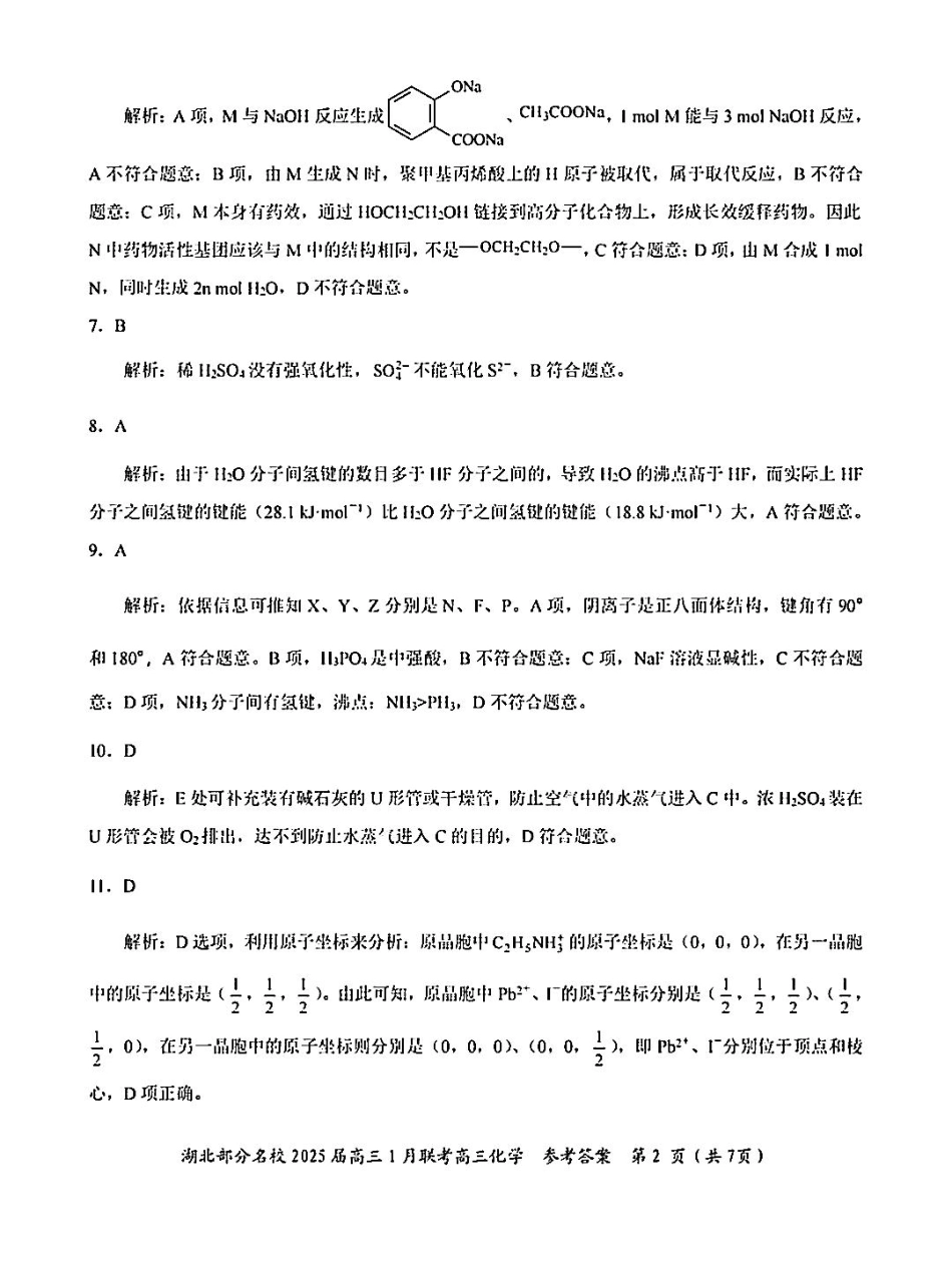 湖北部分名校 2025 届高三1月联考(云学联盟)化学答案.pdf_第2页