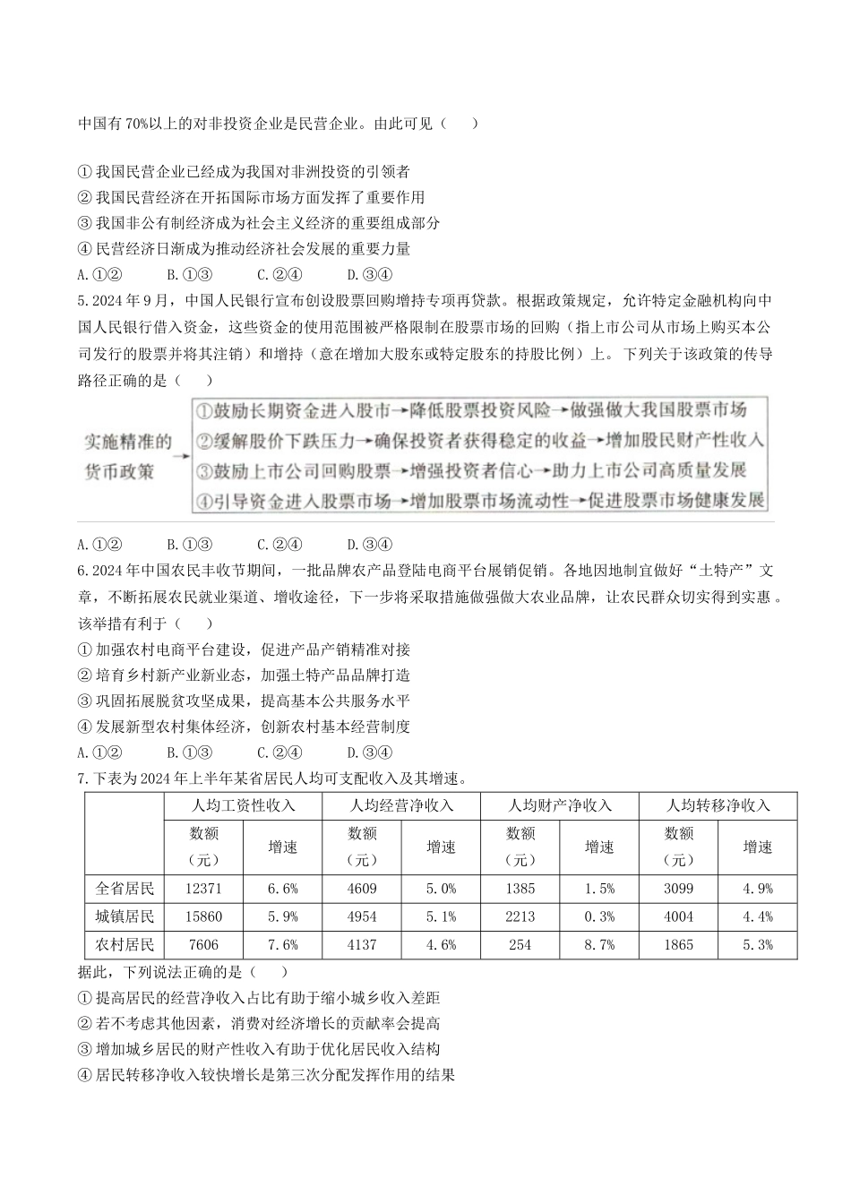 辽宁省抚顺市省重点高中六校2025届高三上学期期末考试 政治含解析.docx_第3页