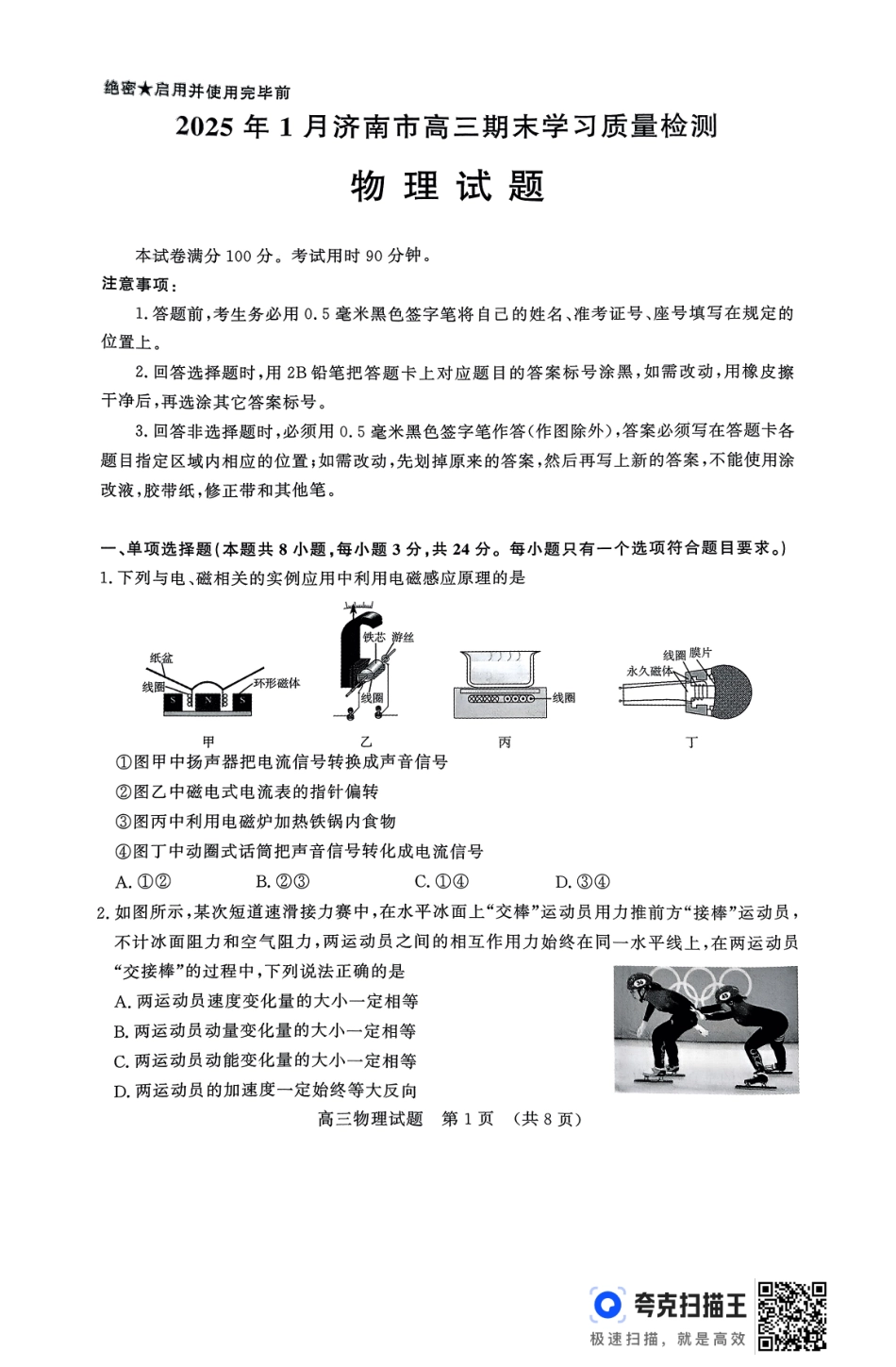山东省济南市高三上学期1月期末考试物理试题.pdf_第1页