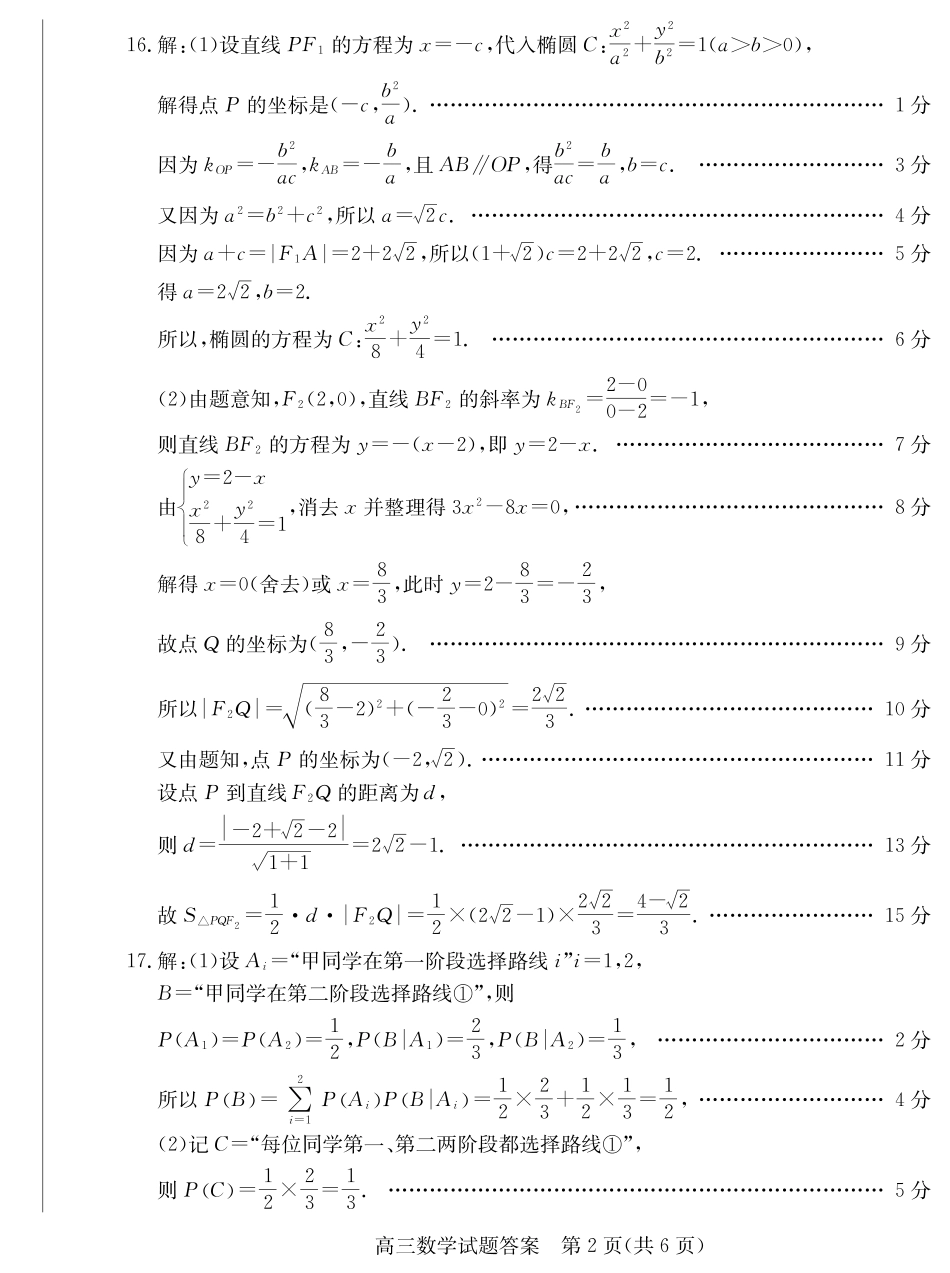 山东省枣庄市2024-2025学年高三上学期期末质量检测数学答案.pdf_第2页