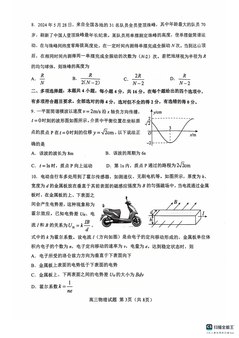 山东省淄博市2024-2025学年第一学期高三期末摸底质量检测物理试卷.pdf_第3页