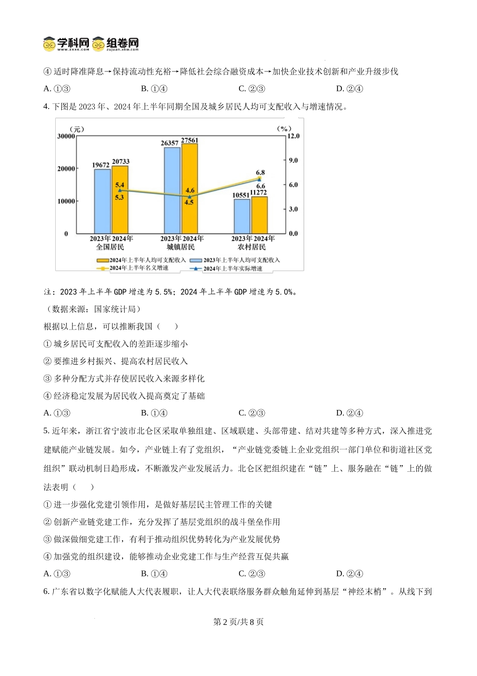 陕西省渭南市2025届高三上学期教学质量检测(Ⅰ)政治.docx_第2页