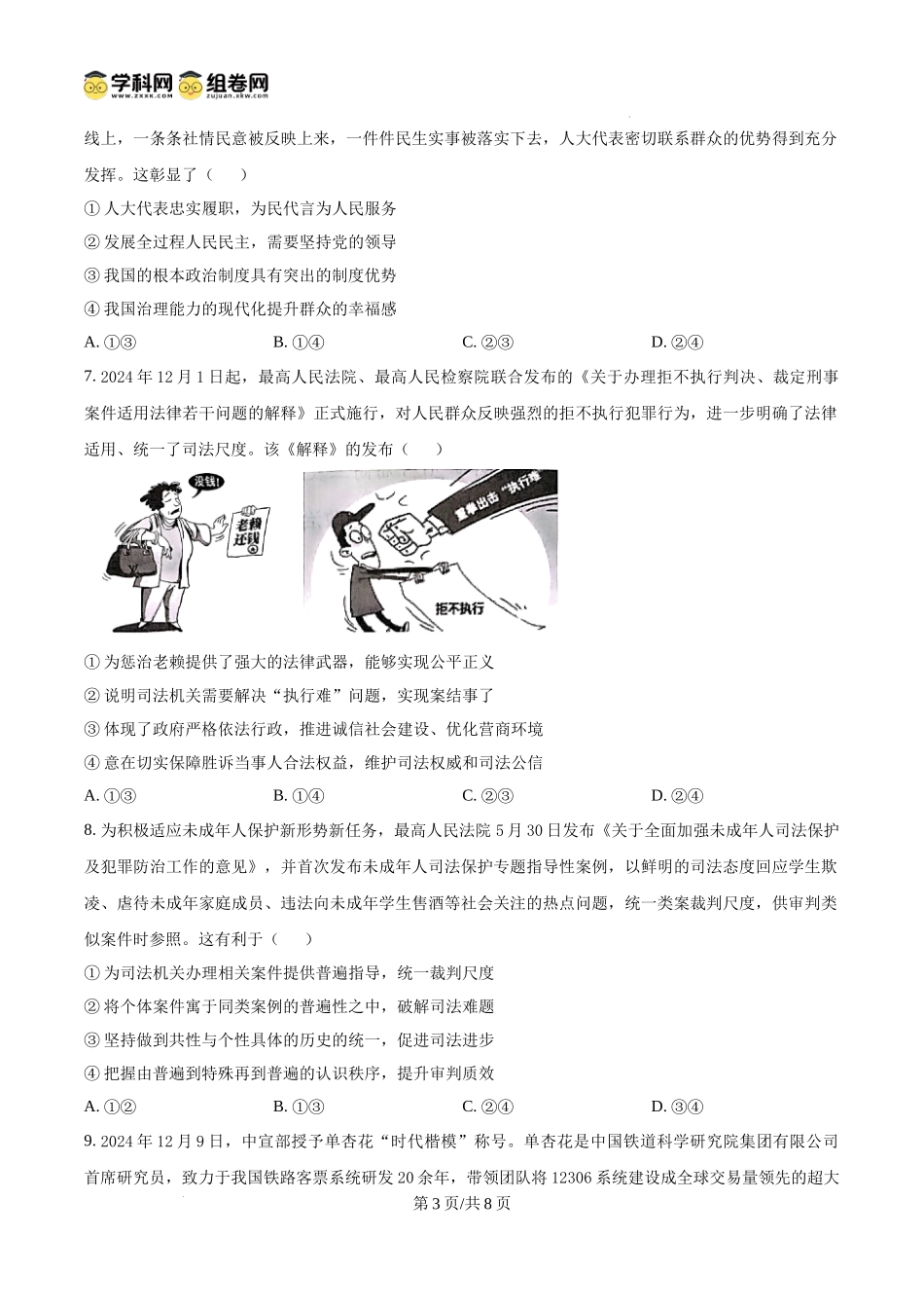 陕西省渭南市2025届高三上学期教学质量检测(Ⅰ)政治.docx_第3页