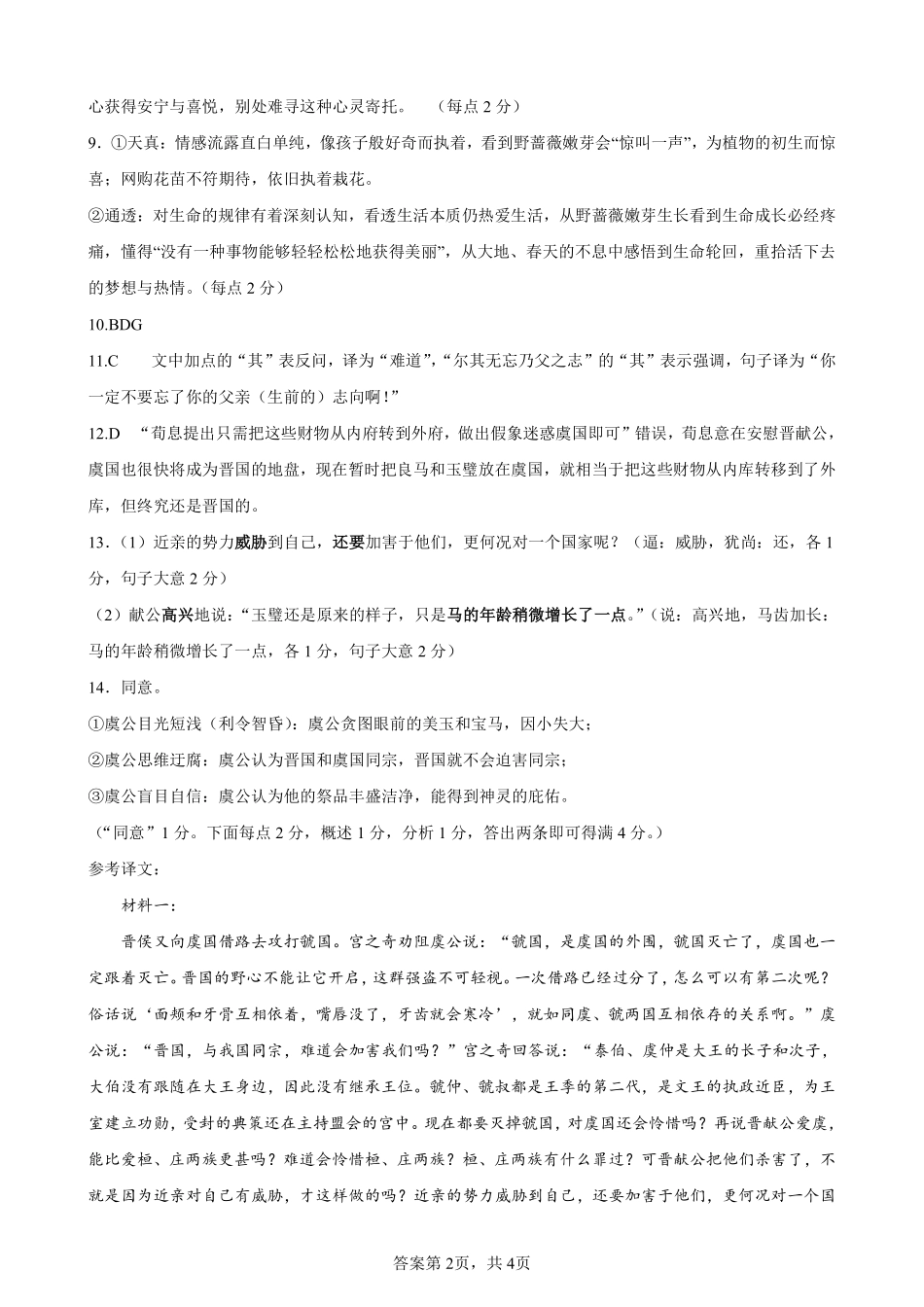 2025湖北省部分重点中学高三第二次联考 语文答案.pdf_第2页