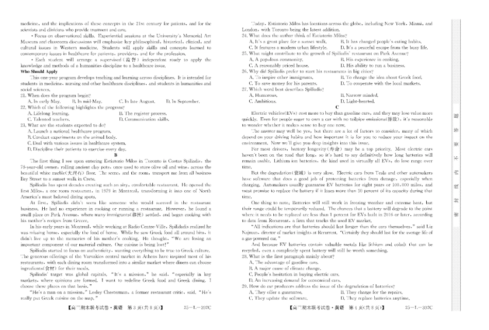 2025内蒙古鄂尔多斯西四旗高三上学期期末联考 英语含解析.pdf_第2页