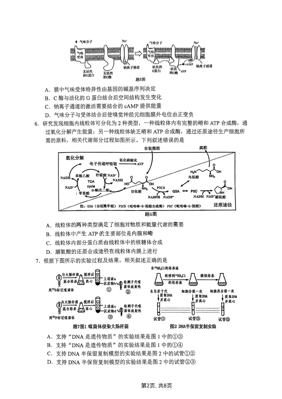 2025重庆市主城五区一诊高三质量调研抽测 生物试题.pdf_第2页