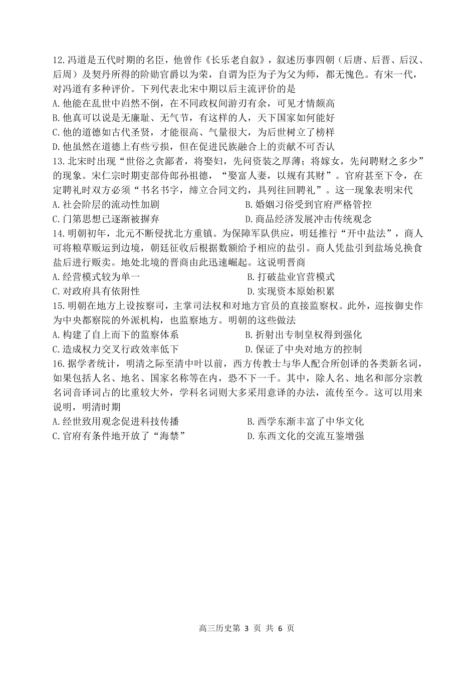 哈三中2024-2025学年度上学期高三学年期末考试 历史.pdf_第3页