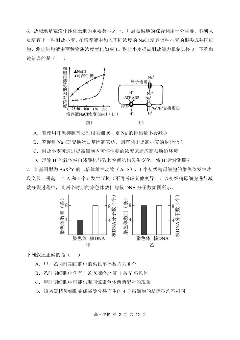 哈三中2024-2025学年度上学期高三学年期末考试 生物.pdf_第2页