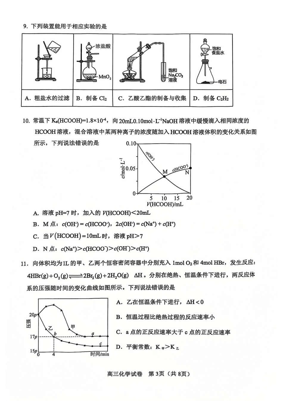 天津市河东区2024-2025学年高三上学期期末质量检测化学+答案.pdf_第3页