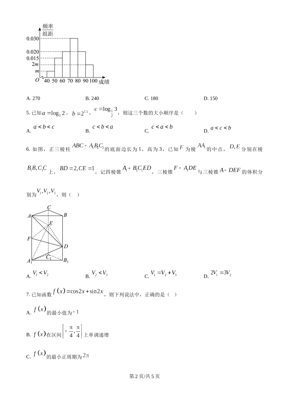 河东区2024~2025学年度第一学期期末质量检测高三数学本试卷分第Ⅰ卷(选择题)和第Ⅱ卷(非选择题)两部分,共150分,考试用时120分钟.第Ⅰ卷(选择题共45分)一、选择题:(本题共9个小题,每小题5分,共45分...