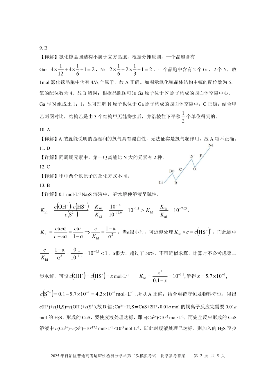 2025年自治区普通高考适应性检测分学科第二次模拟考试化学参考答案第1页共5页2025年自治区普通高考适应性检测分学科第二次模拟考试化学参考答案一、单项选择题(本题共14小题,每小题3分,共42分)1.B【详解】游...