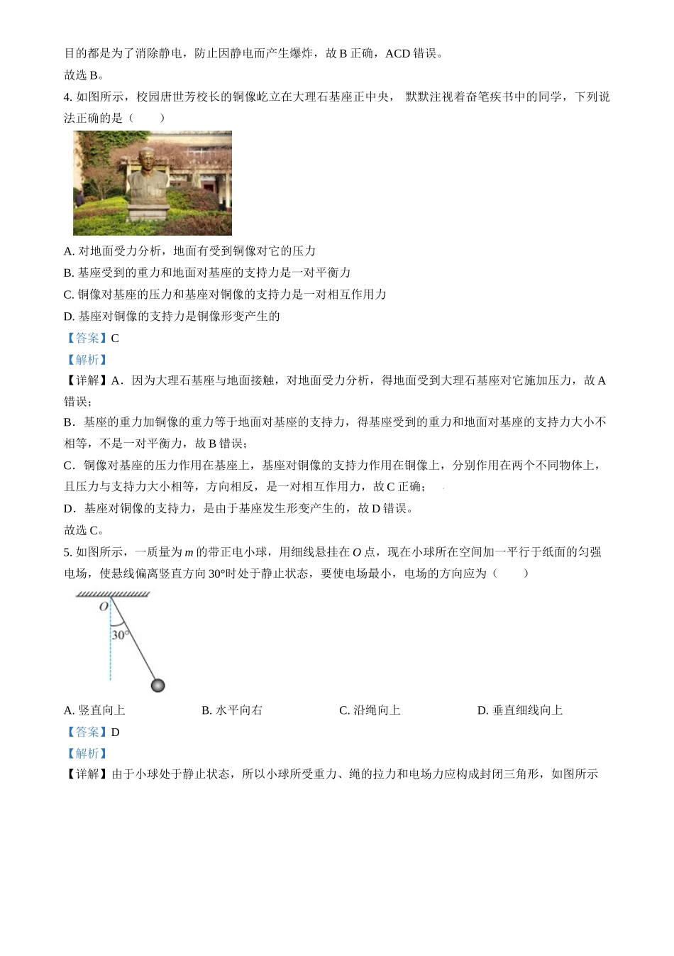 浙江省金华市金丽衢十二校2024-2025学年高三上学期第一次联考物理试卷(解析版).docx_第3页