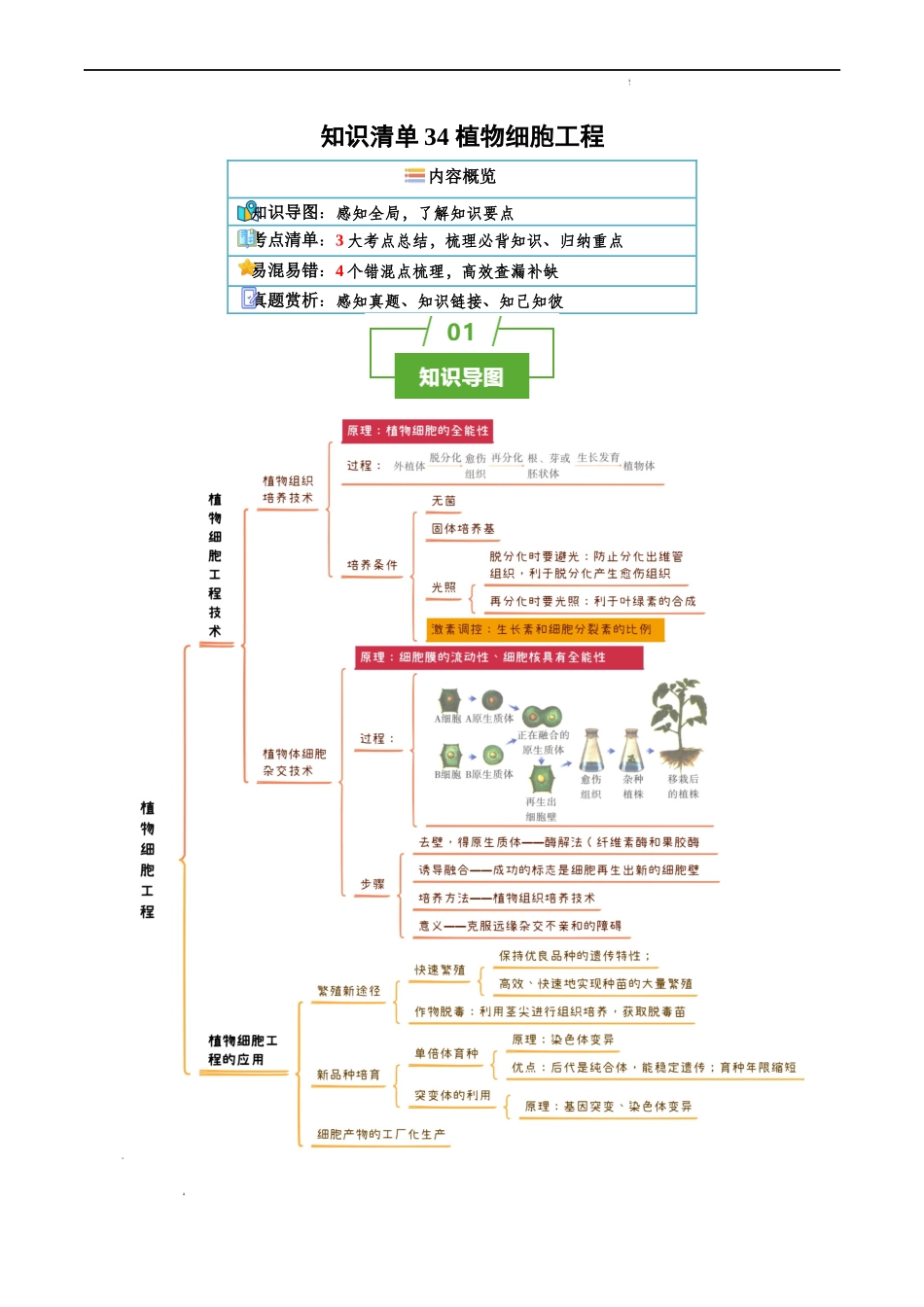 知识清单34 植物细胞工程-2025年高考生物一轮复习知识清单.docx_第1页