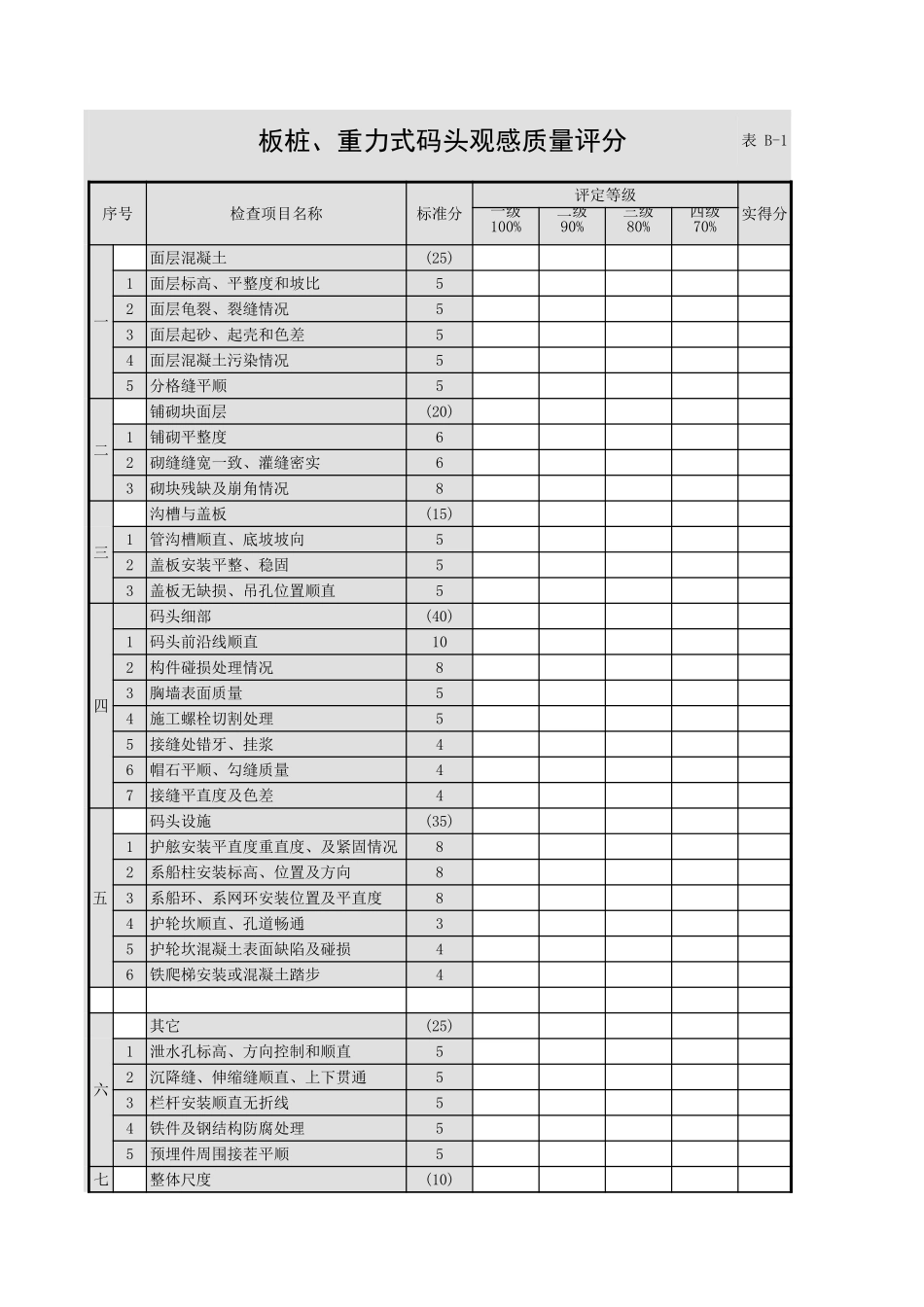 表B-1 板桩、重力式码头观感质量评分.xls_第1页