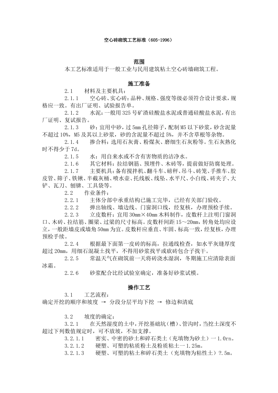 空心砖砌筑工艺标准(605-1996).doc_第1页