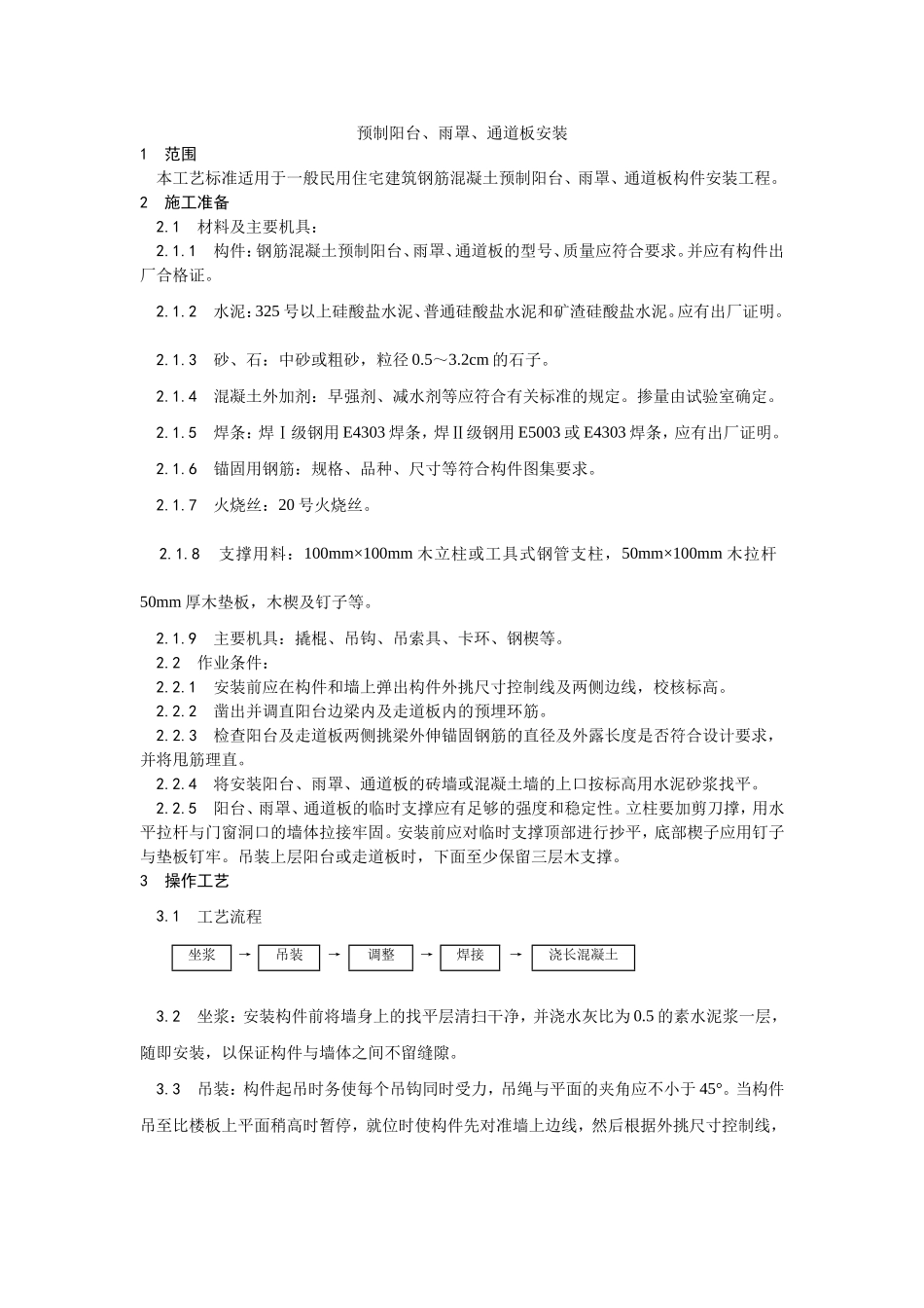 031预制阳台、雨罩、通道板安装工艺.doc_第1页
